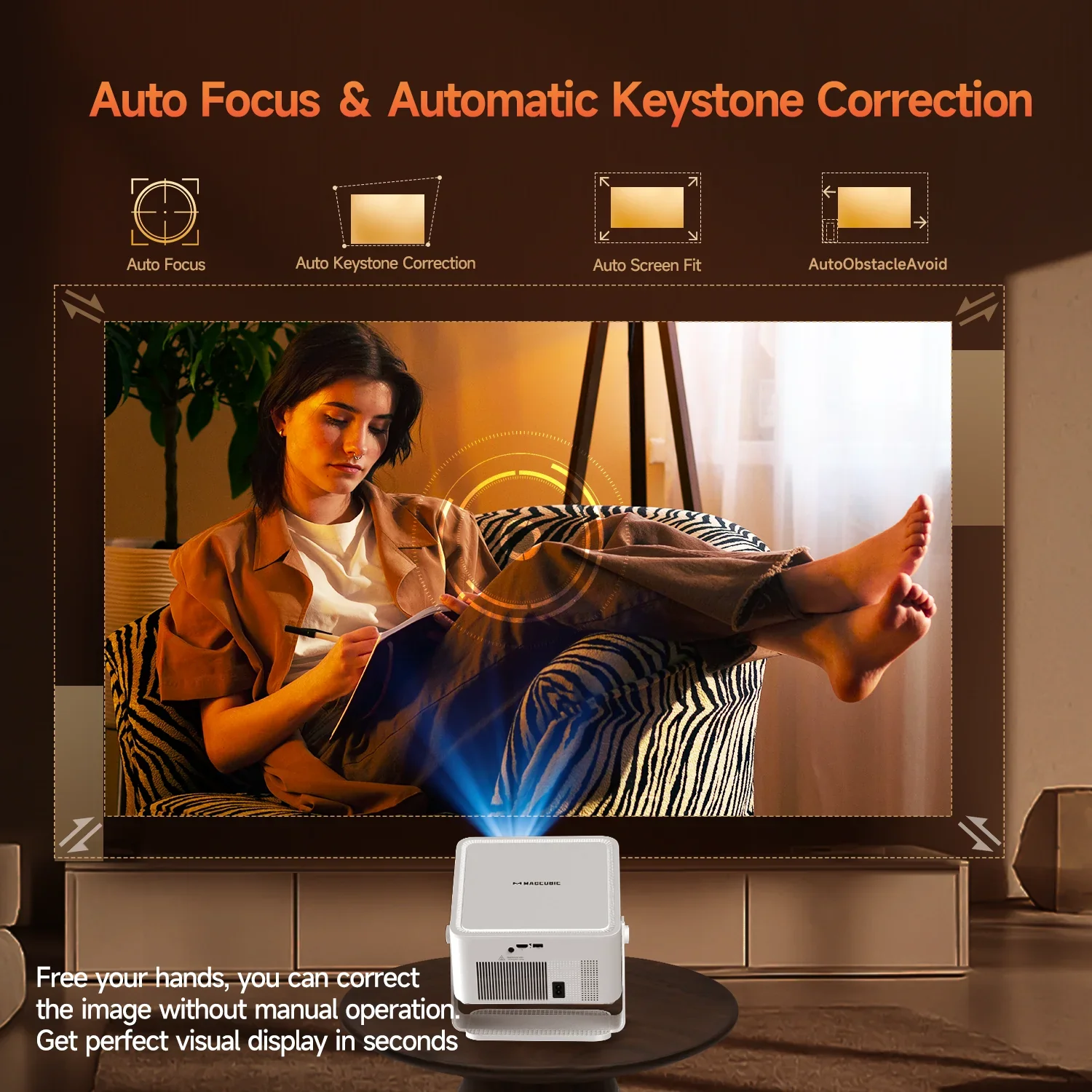 *Features auto-focus, automatic four-corner keystone correction, intelligent obstacle avoidance, screen recognition, and hands-free operation;