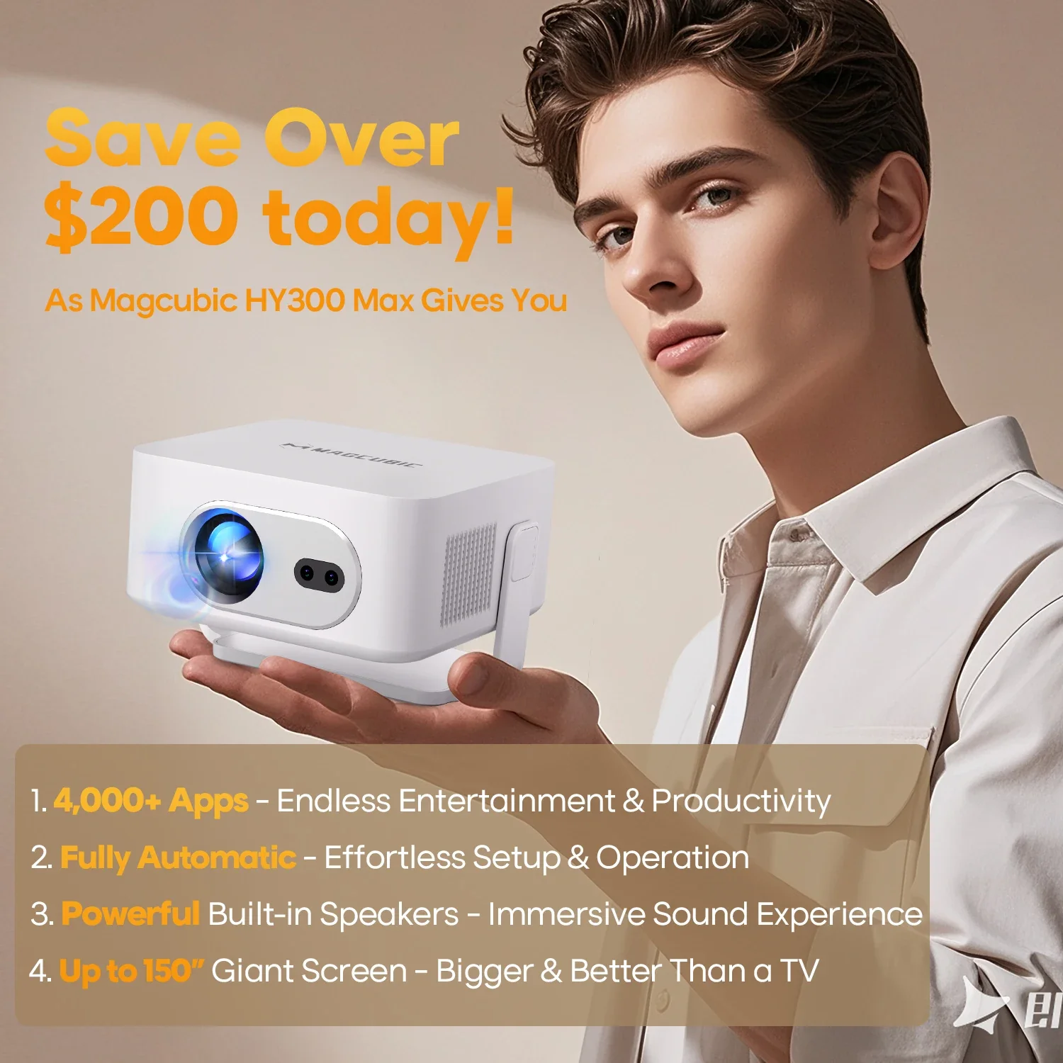 Magcubic Android 14 Auto Focus HY300Max Portable Projector 8K 260ANSI WiFi 6 Projector Support Full HD 720P Home Outdoor Cinema